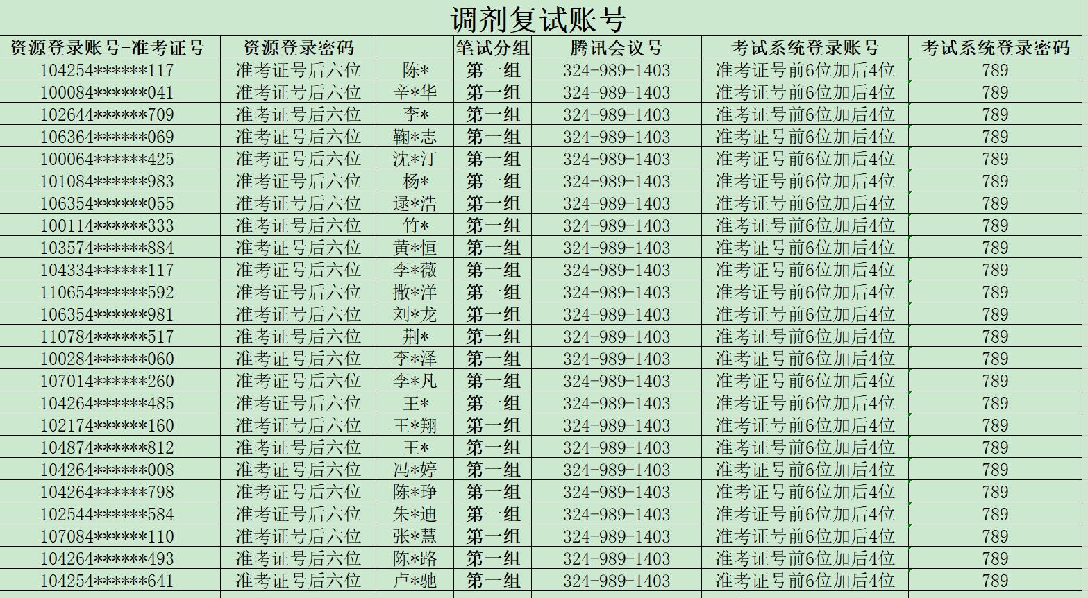 附录:笔试分组对应表,第一组腾讯会议:324-989-1403 ;第二组腾讯会议:421-466-3606