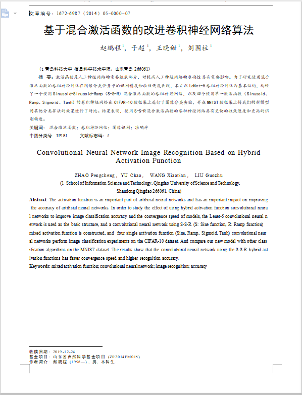 19、论文--基于混合激活函数的改进卷积神经网络算法