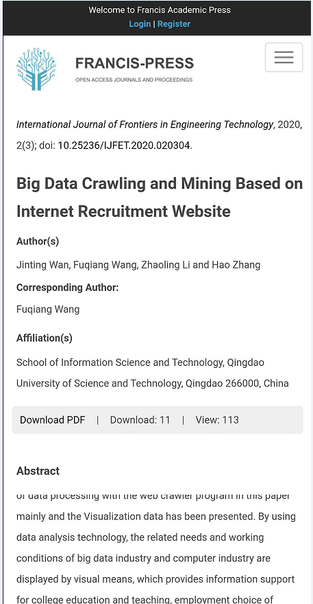 20、论文--Big Data Crawling and Mining based on Internet Recruitment Website