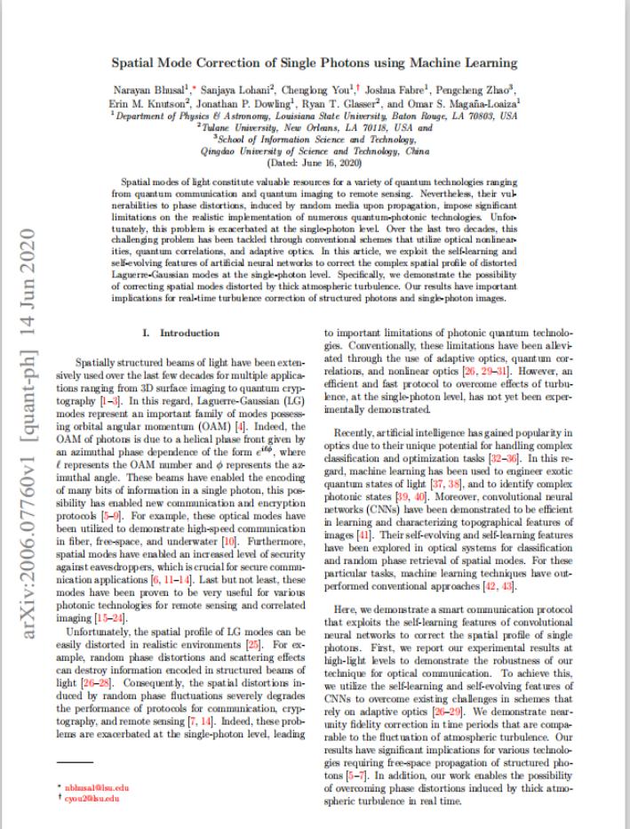 21、论文--Spatial Mode Correction of Single Photons using Machine Learning