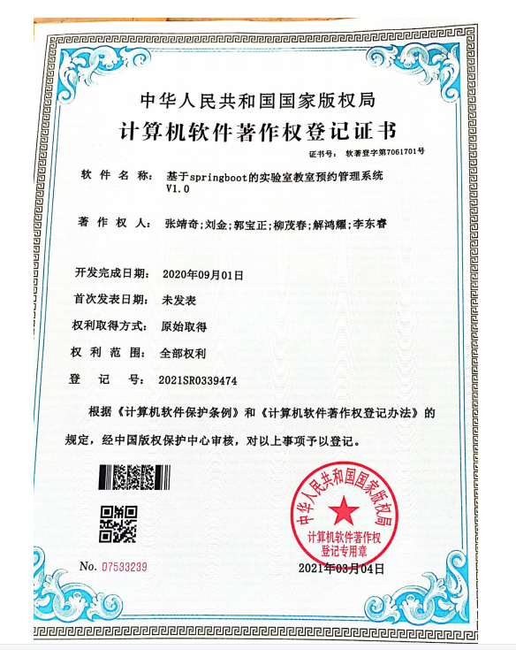 11、软件著作权--基于Springboot的实验室教室预约管理系统V1.0