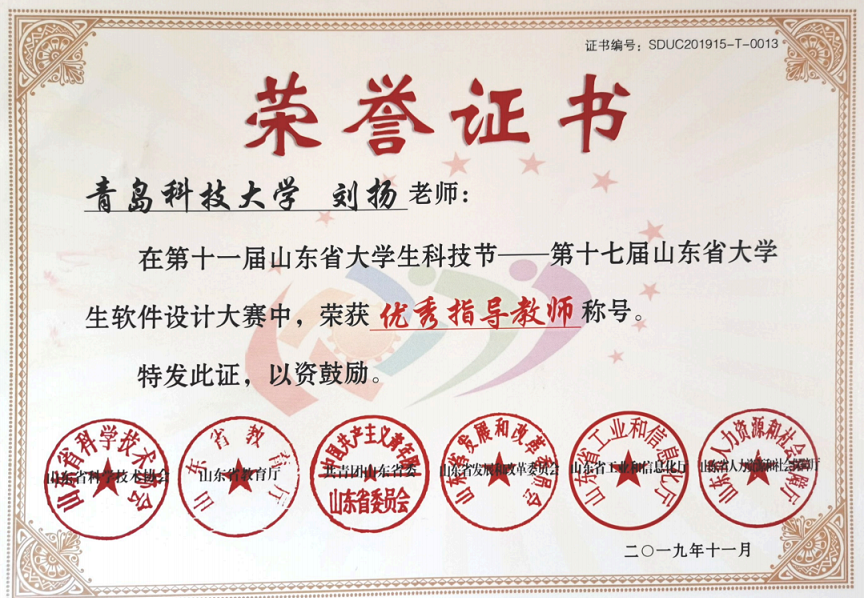 41、教师获奖--山东省大学生软件设计大赛优秀指导教师
