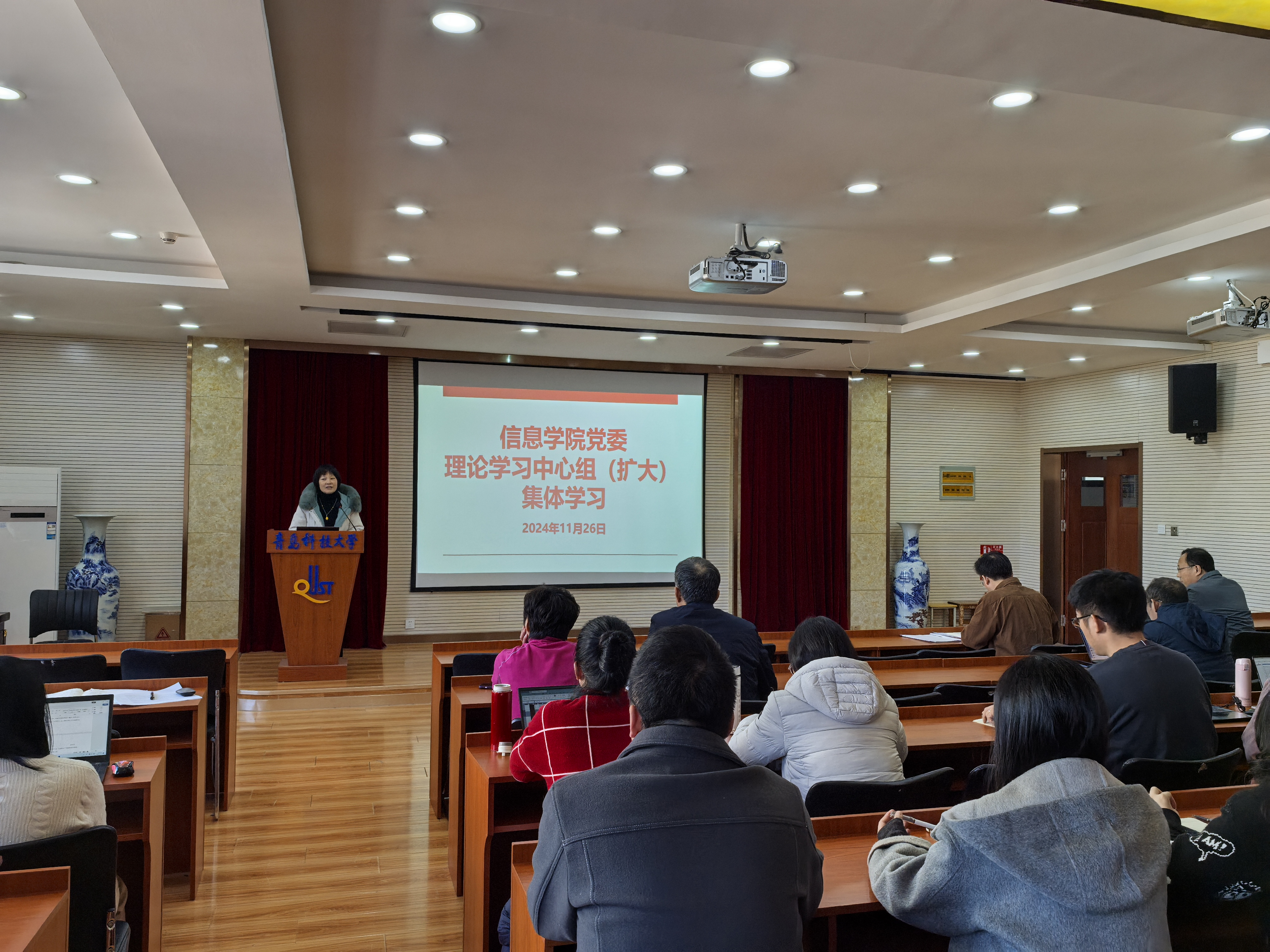 11月26日,信息学院党委理论学习中心组(扩大)举行了第十一次集体学习。本次学习特邀学校党委常委、统战部部长秦姣同志就新时代党的民族宗教政策进行专题报告,并就民族宗教工作提出具体要求。学院党委理论学习中心组成员、全体党支部书记、教学系主任及专职辅导员参加了此次学习,学习会由学院党委书记许桂锋同志主持。