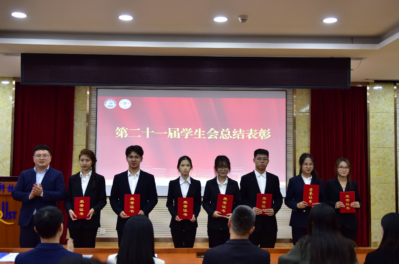首先,学生会指导老师郝昱猛、研究生会指导老师屈会奇分别宣读了对第二十一届学生会、第五届研究生会的表彰决定,并为获得“优秀成员”和“优秀骨干”的同学颁发荣誉证书。