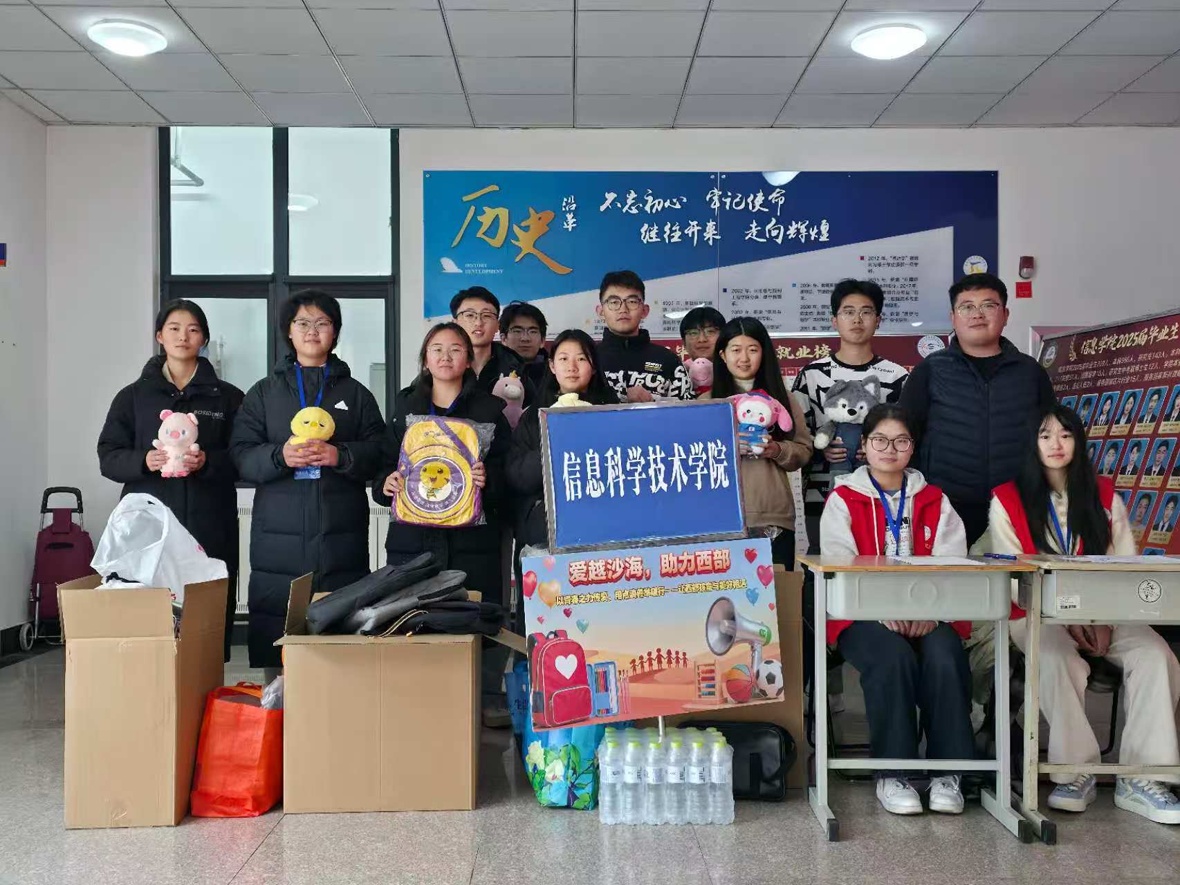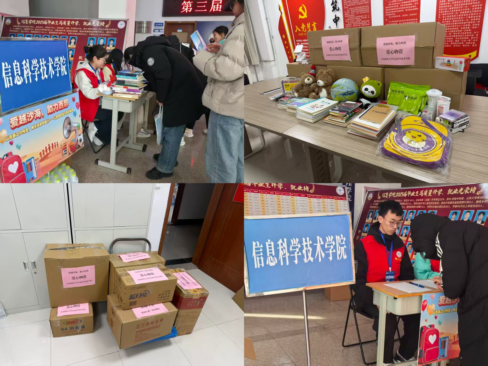 为响应国家西部大开发与乡村振兴战略,关怀偏远地区儿童成长。信息学院联合学校西部计划项目办、校学生会、研究生会及多个学生社团,共同发起“爱越沙海,助力西部”爱心接力活动。学院采用“线上宣传+线下募捐”相结合的方式,广泛动员师生参与。