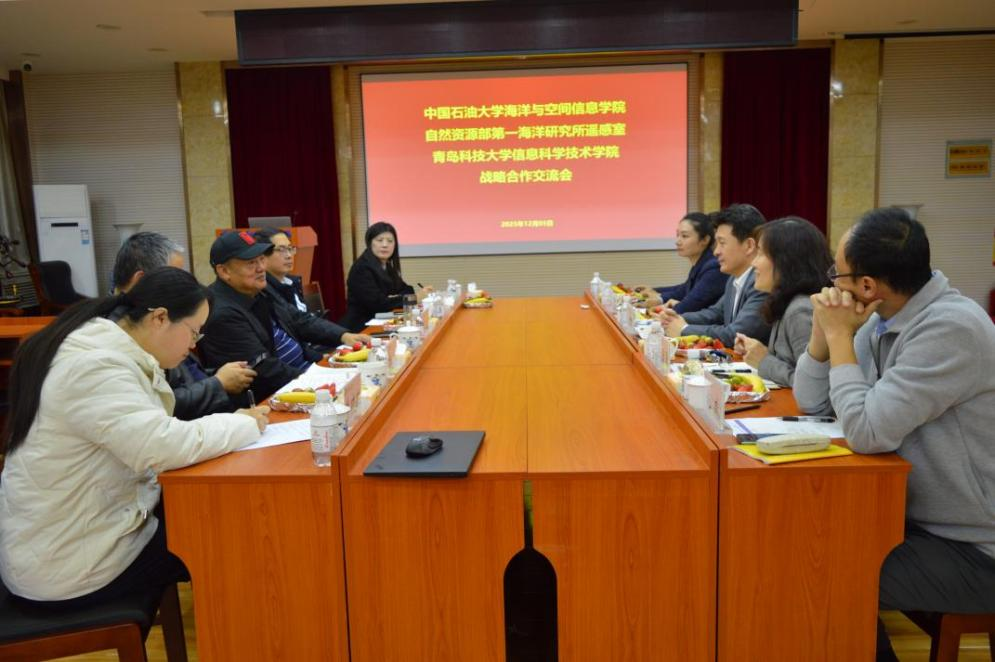 近日,中国石油大学(华东)海洋与空间信息学院院长、自然资源部第一海洋研究所张杰一行来访青岛科技大学,在信息科学技术学院召开战略合作交流会。学校副校长吴明铂,信息科学技术学院院长王景景、学术院长颜舒琳,以及相关教师出席会议。